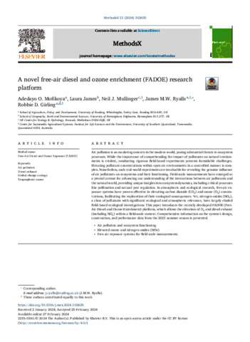 A novel free-air diesel and ozone enrichment (FADOE) research platform.