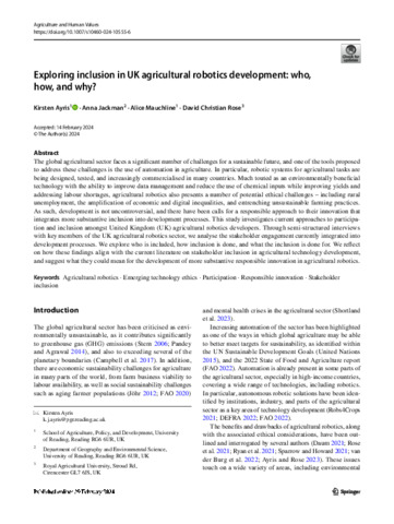 Exploring inclusion in UK agricultural robotics development: who, how, and why?