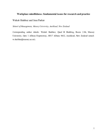 Shahbaz, W. orcid id iconORCID: https://orcid.org/0000-0002-9750-6838 and Parker, J. (2021) Workplace mindfulness: fundamental issues for research and practice. Labour and Industry, 31 (2). pp. 172-179. ISSN 2325-5676 doi: 10.1080/10301763.2021.1878572