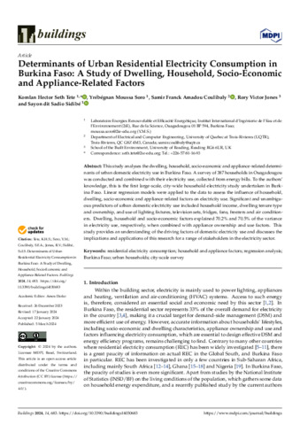 Determinants of urban residential electricity consumption in Burkina Faso: a study of dwelling, household, socio-economic and appliance-related factors.