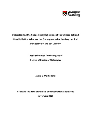 Mulholland, J. S. (2022) Understanding the geopolitical implications of the Chinese belt and road initiative: what are the consequences for the geographical perspective of the 21st century. PhD thesis, University of Reading. doi: 10.48683/1926.00115655