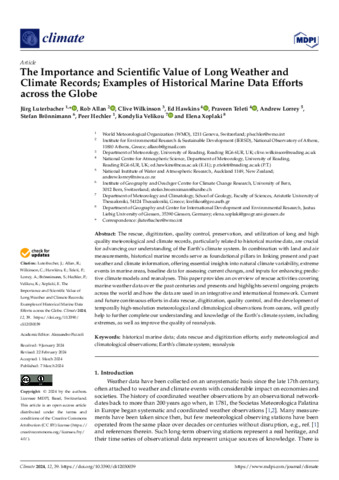 The rescue, digitization, quality control, preservation, and utilization of long and high quality meteorological and climate records, particularly related to historical marine data, are crucial for advancing our understanding of the Earth’s climate system. In combination with land and air measurements, historical marine records serve as foundational pillars in linking present and past weather and climate information, offering essential insights into natural climate variability, extreme events in marine areas, baseline data for assessing current changes, and inputs for enhancing predictive climate models and reanalyses. This paper provides an overview of rescue activities covering marine weather data over the past centuries and presents and highlights several ongoing projects across the world and how the data are used in an integrative and international framework. Current and future continuous efforts in data rescue, digitization, quality control, and the development of temporally high-resolution meteorological and climatological observations from oceans, will greatly help to further complete our understanding and knowledge of the Earth’s climate system, including extremes, as well as improve the quality of reanalysis.
