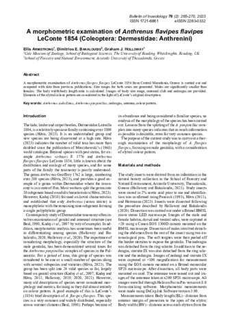 Armstrong, E. orcid id iconORCID: https://orcid.org/0000-0003-0495-0313, Bakaloudis, D. E. and Holloway, G. J. orcid id iconORCID: https://orcid.org/0000-0003-0495-0313 (2023) A morphometric examination of Anthrenus flavipes flavipes LeConte 1854 (Coleoptera: Dermestidae: Anthrenini). Bulletin of Insectology, 76 (2). pp. 265-270. ISSN 2283-0332