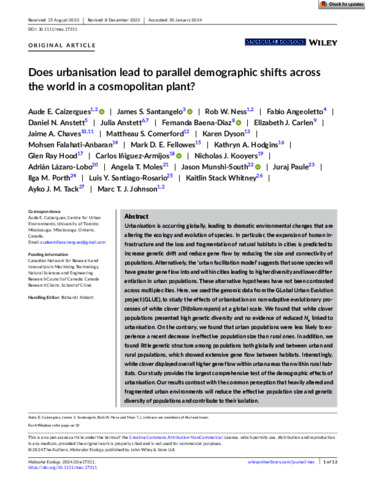 Does urbanisation lead to parallel demographic shifts across the world in a cosmopolitan plant?