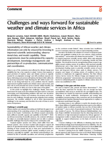 Challenges and ways forward for sustainable weather and climate services in Africa.
