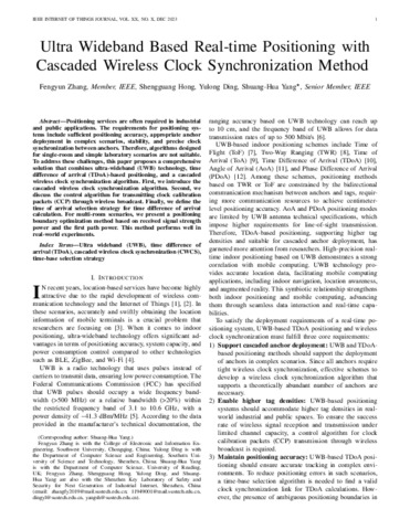 Zhang, F., Hong, S., Ding, Y. and Yang, S.-H. orcid id iconORCID: https://orcid.org/0000-0003-0717-5009 (2024) Ultra-wideband-based real-time positioning with cascaded wireless clock synchronization method. IEEE Internet of Things. ISSN 2327-4662 doi: 10.1109/JIOT.2024.3356117