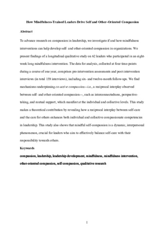 How mindfulness-trained leaders drive self and other-oriented compassion.