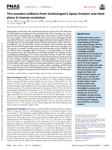 Leder, D., Lehmann, J., Milks, A. orcid id iconORCID: https://orcid.org/0000-0003-0779-6200, Koddenberg, T., Sietz, M., Vogel, M., Böhner, U. and Terberger, T. (2024) The wooden artifacts from Schöningen’s Spear Horizon and their place in human evolution. Proceedings of the National Academy of Sciences of the United States of America, 121 (15). e2320484121. ISSN 0027-8424 doi: 10.1073/pnas.2320484121