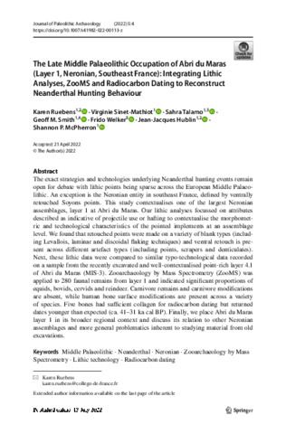 The late middle Palaeolithic occupation of Abri du Maras (Layer 1, Neronian, southeast France): integrating lithic analyses, ZooMS and radiocarbon dating to reconstruct Neanderthal hunting behaviour