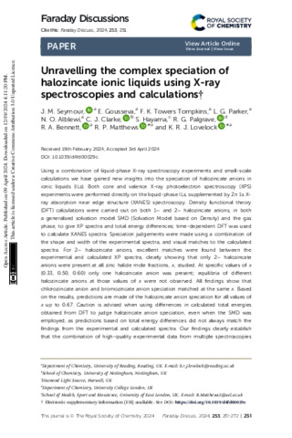 Seymour, J. M., Gousseva, E., Towers Tompkins, F., Parker, L. G., Alblewi, N. O., Clarke, C. J., Hayama, S., Palgrave, R. G., Bennett, R. A. ORCID: https://orcid.org/0000-0001-6266-3510, Matthews, R. P. and Lovelock, K. R. J.