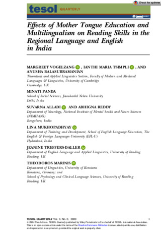 Tsimpli, I. M., Mukhopadhyay, L., Treffers-Daller, J., Alladi, S., Marinis, T., Panda, M., Balasubramanian, A., & Sinha, P. (2019). Multilingualism and multiliteracy in primary education in India: A discussion of some methodological challenges of an interdisciplinary research project. Research in Comparative and International Education, 14(1), 54–76. https://doi.org/10.1177/1745499919828908