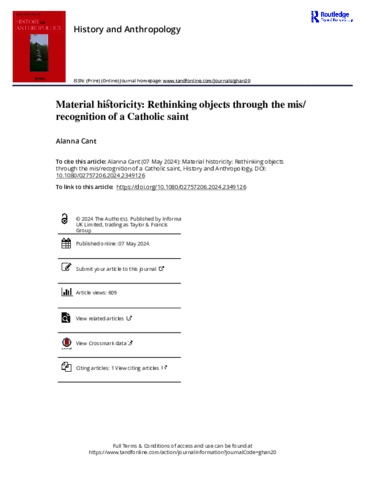 Carroll, Timothy. 2018. “Im/material objects: Relics, gestured signs, and the substance of the immaterial.” In Materiality and the Study of Religion: The Stuff of the Sacred, edited by Tim Hutchings, Joanne McKenzie. London: Routledge.