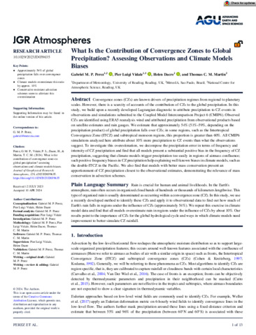 Perez, G. M. P., Vidale, P. L. orcid id iconORCID: https://orcid.org/0000-0002-1800-8460, Dacre, H. orcid id iconORCID: https://orcid.org/0000-0003-4328-9126 and Martin, T. C. M. (2024) What is the contribution of convergence zones to global precipitation? Assessing observations and climate models biases. JGR Atmospheres, 129 (9). e2023JD039635. ISSN 2169-8996 doi: 10.1029/2023JD039635