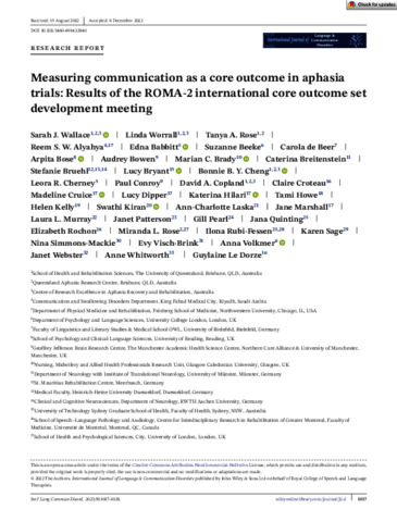 Measuring communication as a core outcome in aphasia trials: results of the ROMA‐2 international core outcome set development meeting.