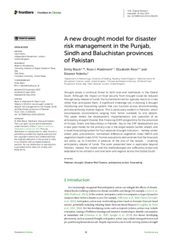 A new drought model for disaster risk management in the Punjab, Sindh and Baluchistan provinces of Pakistan.