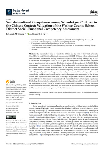 Social-emotional competence among school-aged children in the Chinese context: validation of the Washoe County School District-Social emotional competency assessment.