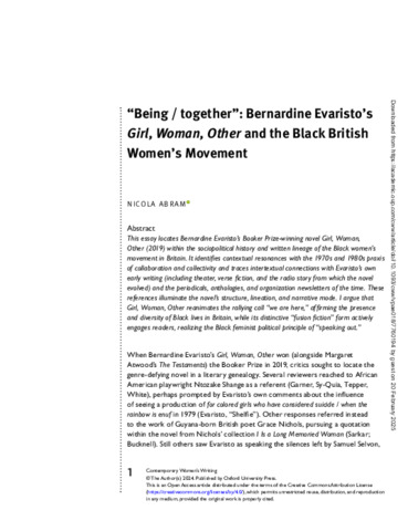 "Being / together": Bernardine Evaristo’s Girl, Woman, Other and the Black British women’s movement.