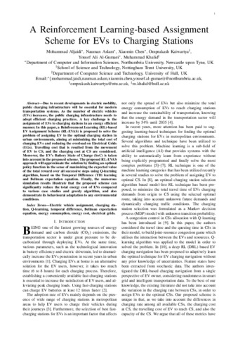 A reinforcement learning-based assignment scheme for EVs to charging stations.