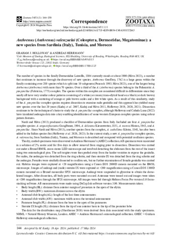 Anthrenus (Anthrenus) valenzuelai (Coleoptera, Dermestidae, Megatominae): a new species from Sardinia (Italy), Tunisia, and Morocco.