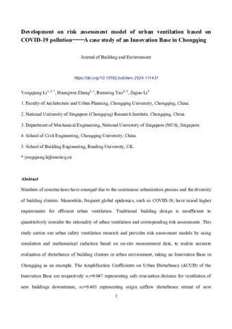 Development on risk assessment model of urban ventilation based on COVID-19 pollution: a case study of an innovation base in Chongqing.