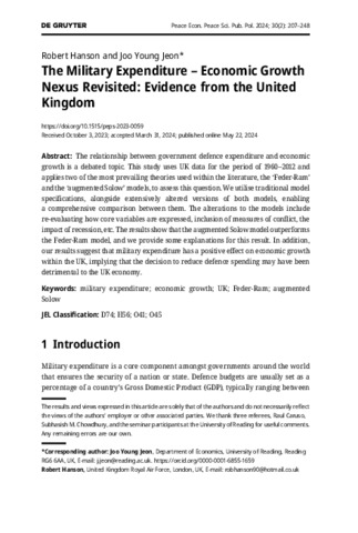 Peace Economics, Peace Science and Public Policy, 30 (2).