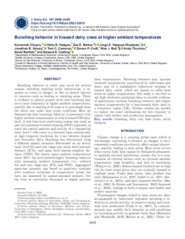 Bunching behavior in housed dairy cows at higher ambient temperatures.