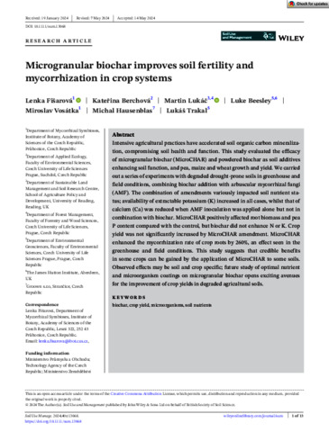 Microgranular biochar improves soil fertility and mycorrhization in crop systems.