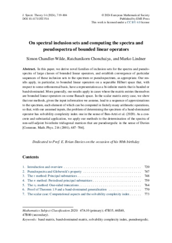 On spectral inclusion sets and computing the spectra and pseudospectra of bounded linear operators.