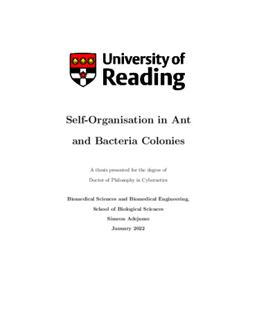 Adejumo, S. (2024) Self-organisation in ant and bacteria colonies. PhD thesis, University of Reading. doi: 10.48683/1926.00116746