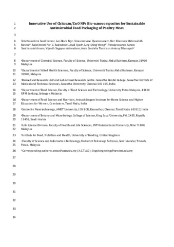 Innovative use of chitosan/ZnO NPs bio-nanocomposites for sustainable antimicrobial food packaging of poultry meat.