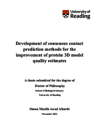 Alharbi, S. M. A. (2024) Development of consensus contact prediction methods for the improvement of protein 3D model quality estimates. PhD thesis, University of Reading. doi: 10.48683/1926.00116877