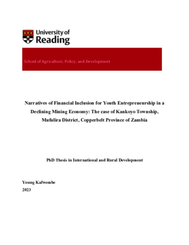 Kafwembe, Y. (2024) Narratives of financial inclusion for youth entrepreneurship in a declining mining economy: the case of Kankoyo Township, Mufulira District, Copperbelt Province of Zambia. PhD thesis, University of Reading. doi: 10.48683/1926.00116934