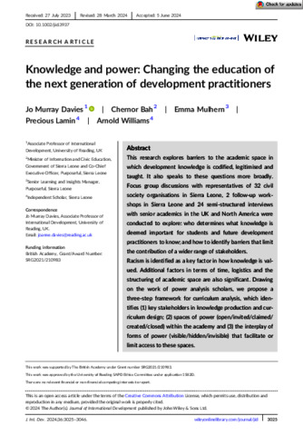 | Uncontrolled Keywords | Development Studies, Power Analysis, knowledge hierarchies, Decolonising the Curriculum, southern knowledge, Power Cube, Sierra Leone |