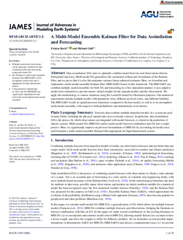 A multi‐model ensemble Kalman filter for data assimilation and forecasting.