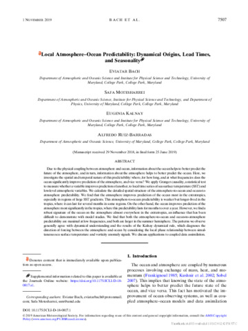 Local atmosphere–ocean predictability: dynamical origins, lead times, and seasonality.
