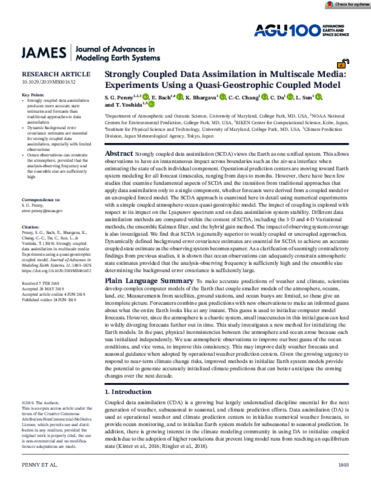 Penny, S. G., Bach, E. orcid id iconORCID: https://orcid.org/0000-0002-9725-0203, Bhargava, K., Chang, C. ‐C., Da, C., Sun, L. and Yoshida, T. (2019) Strongly coupled data assimilation in multiscale media: experiments using a quasi‐geostrophic coupled model. Journal of Advances in Modeling Earth Systems, 11 (6). pp. 1803-1829. ISSN 1942-2466 doi: 10.1029/2019MS001652