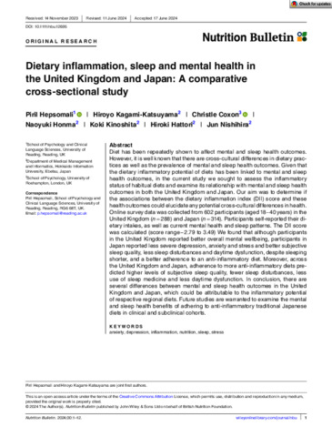 Dietary inflammation, sleep, and mental health in the UK and Japan: an comparative cross-sectional study.