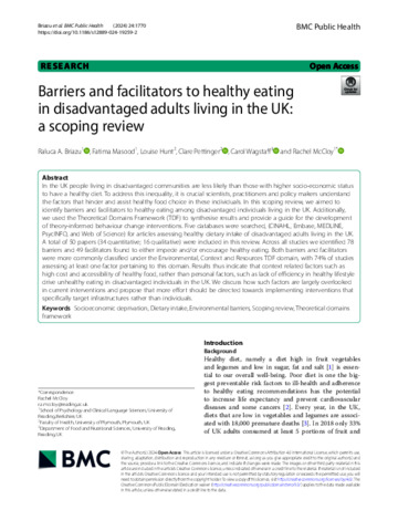 Barriers and facilitators to healthy eating in disadvantaged adults living in the UK: a scoping review.