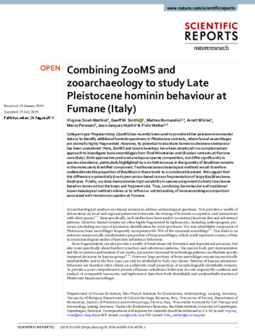 Combining ZooMS and zooarchaeology to study Late Pleistocene hominin behaviour at Fumane (Italy).