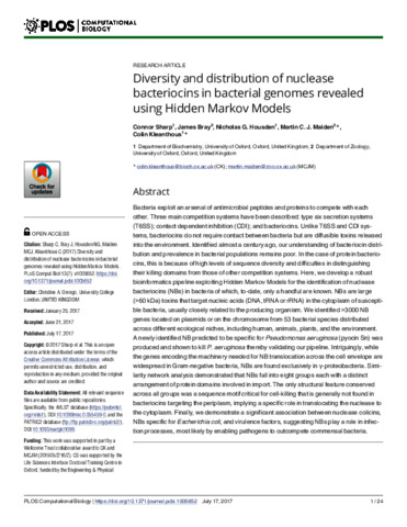 Diversity and distribution of nuclease bacteriocins in bacterial genomes revealed using Hidden Markov Models.