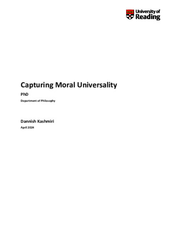 Kashmiri, D. (2024) Capturing Moral Universality. PhD thesis, University of Reading. doi: 10.48683/1926.00117327