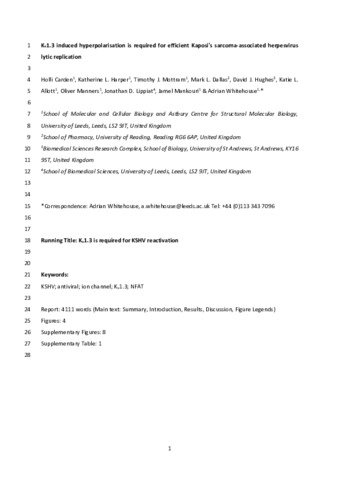 Kv 1.3-induced hyperpolarization is required for efficient Kaposi’s sarcoma–associated herpesvirus lytic replication.