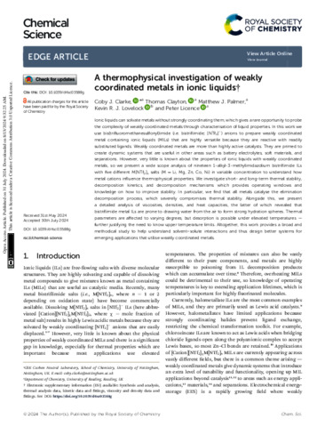 A thermophysical investigation of weakly coordinated metals in ionic liquids.