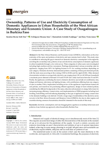 Ownership, patterns of use and electricity consumption of domestic appliances in urban households of the West African monetary and economic union: a case study of Ouagadougou in Burkina Faso.