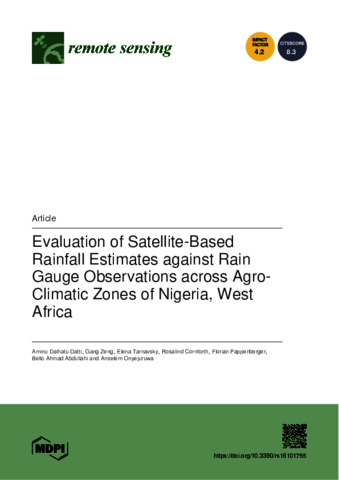 56. Garba, J.N.; Diasso, U.J.; Waongo, M.; Sawadogo, W.; Daho, T. Performance Evaluation of Satellite-Based Rainfall Estimation