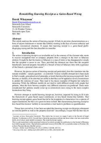 Remodelling knowing receipt as a gains-based wrong.