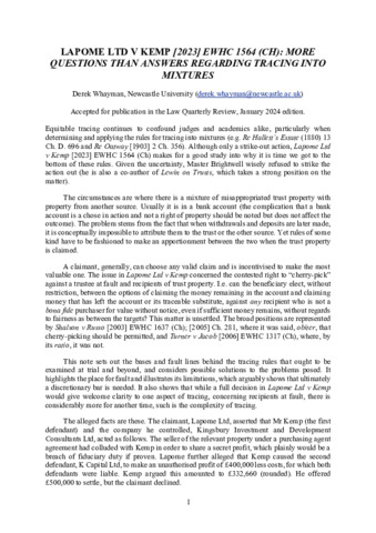 Additional Information Unmapped bibliographic data: ST - Lapome Ltd v Kemp: More Questions than Answers regarding Tracing into Mixtures [Field not mapped to EPrints] L1 - internal-pdf://1716245696/Whayman - Lapome (2024) LQR for deposit.pdf [Field not mapped to EPrints]