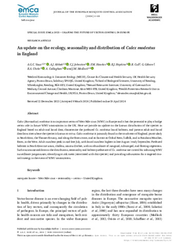 An update on the ecology, seasonality and distribution of Culex modestus in England.