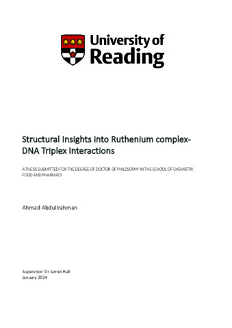 Abdullrahman, A. (2024) Structural insights into Ruthenium complex-DNA triplex interactions. PhD thesis, University of Reading. doi: 10.48683/1926.00117696