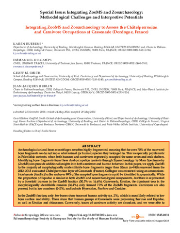 Integrating ZooMS and Zooarchaeology to assess the Châtelperronian and carnivore occupations at Cassenade (Dordogne, France).